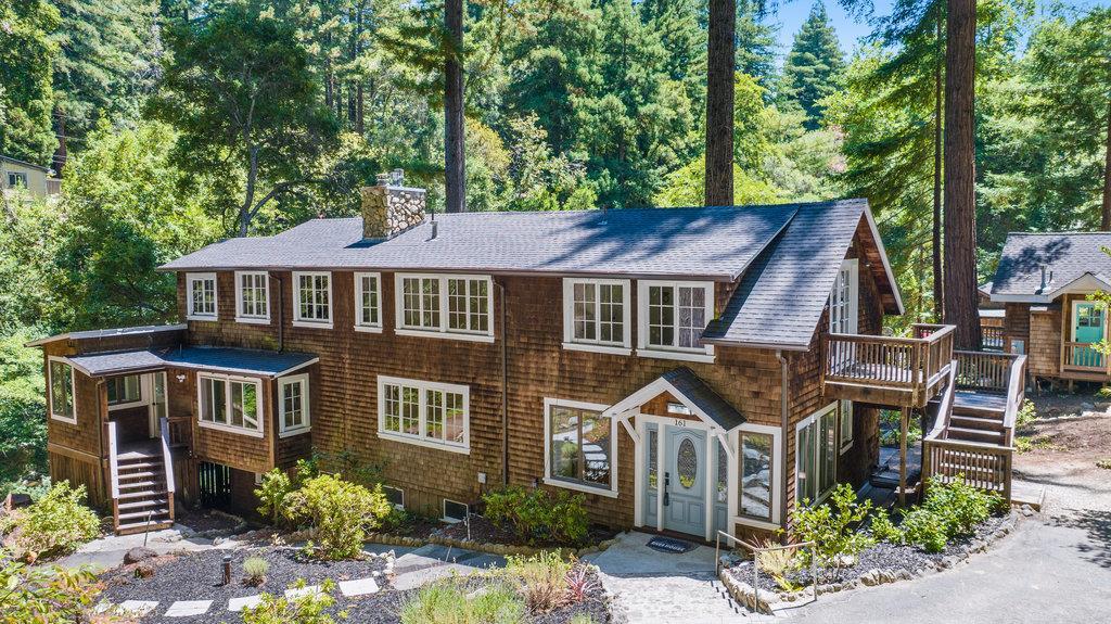 Timeless, sunny, riverfront retreat! Exquisite river setting! Outdoor living is the highlight of this property w/expansive decks, a sandy river beach, boat slip, a grand Carmel-stone fireplace, & stone-lined walkways. 300 feet of riverfront & historic damming rights offer an unparalleled outdoor living experience, w/extraordinary benefits of swimming, boating, & relaxing on your own private, sunlit beach & riverfront, right in your backyard! The property has tastefully evolved & blends modern elegance w/historic charm. A 2024 restoration introduced multiple upgrades, including a new central heating furnace & refinished hardwood floors. The home features an open living room w/loads of windows & a primary retreat. This heirloom estate comprises 3 parcels & 2 legal homes. Steeped in history, the property was originally a logging headquarters. In 1928, the property was transformed into a private hunting lodge, adding unique features like individual sinks in the bedrooms that remain to this day. 10 min. to Henry Cowell, 25 min. to Santa Cruz, 46 min. to the airport. Perfect 2nd home or year-round sanctuary. This legacy property is a rare blend of history, comfort, and natural beauty. Property is now partially staged.
