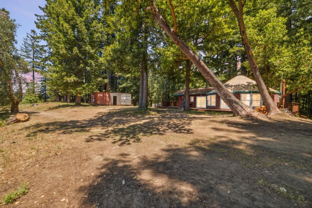 Welcome to Redwood Ridge Way, a whimsical hilltop retreat tucked away at the end of a private road. This sunny, south-facing 10-acre haven not only offers breathtaking panoramic views and glimpses of Monterey Bay, but it also invites you into a world of tranquility and inspiration. Imagine unwinding in a cozy 30-foot yurt, complete with real windows, doors, and bamboo flooring, perched on a redwood deck. Theres a mudroom and a bathhouse, all designed with rustic charm and a hint of luxury. For those passionate about permaculture, meditation, or yoga retreats, this property is a canvas for your lifestyle dreams. With a private well, solar panels, and reliable cell service, you get the best of both off-grid serenity and modern convenience. Whether youre seeking a private retreat, an artists sanctuary, or a space for wellness and mindful living, Redwood Ridge Way is ready to welcome you home.