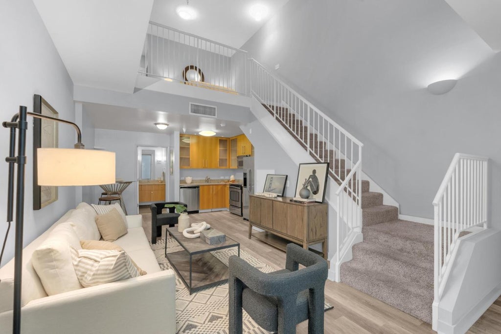 Welcome to The Globe on 3rd Street, where urban convenience meets modern loft living. Enjoy your own private entrance and gated one-car parking, with additional metered parking right outside for guests and visitors. Step outside and youre just moments away from local favorites like Mountain Mikes Pizza, San Jose State University, San Pedro Square, City Hall, and major downtown employers such as Zoom, Adobe, and various financial firms. Inside, this stylish one-bedroom loft features upgraded laminate flooring and fresh paint. The main level offers an open-concept living area, dining space, and kitchen, along with a full bathroom equipped with a shower-over-tub combo and a stackable washer and dryer. Upstairs, the loft bedroom is filled with natural light from additional windows and includes a walk-in closet and a convenient second sink. Residents also enjoy access to the on-site gym located on the second floor, a welcoming lobby area with mailboxes, and a beautifully landscaped courtyard.