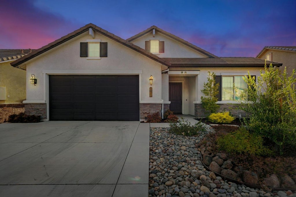 Wonderful Santana Ranch Single Story - This Turn Key Anderson Homes "Monterey" Model is approx. 2003 SF w/4 beds & 2 full baths on a 7,980 SF lot. Welcomed by your fully landscaped low maintenance front yard, covered entry, & Eight ft. tall insulated front door; a tiled entryway leads to a spacious front bedroom & open concept kitchen living area w/gas fireplace. The kitchen features granite counters, Island w/sink, stainless steel Bosch appliances, gas cooktop, built-in oven & microwave. Tall ceilings w/recessed lights provide an open & airy feeling throughout the home. Eight ft tall interior doors give the home a grand feel & are wonderful accents to the spacious bedrooms. The hall bath has marble countertops, double sinks & a tub shower combination. The interior laundry leads to a fully finished attached garage w/ efficient tankless water heater & wide garage door. The main bedroom retreat features tall ceilings, rear yard access, ensuite bath w/double sinks, marble countertop, water closet, stall shower, sunken tub & walk-in closet. The home is equipped with a fire suppression system & security alarm. Bedrooms pre-wired for cable. Rear yard has low maintenance landscaping & is pre-plumbed for a gas BBQ & has external electrical outlets. Community Park & School Nearby.