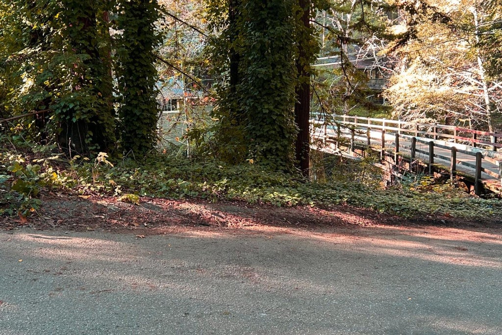 Nestled beside a rustic bridge, this property offers a whimsical setting perfect for gathering with friends for a game of Pooh Sticks or simply enjoying the serenity of the river. This unique recreational parcel invites you to experience the timeless beauty of the redwoods in your own private retreat. While current building codes do not permit residential construction, the land is ideally suited for outdoor enjoyment. Imagine creating your own private park: a place to fish, wade in the river, or relax in the shade of towering trees. There is parking for two cars along the road, and a nearby turnout looks like it can accommodate three to four more. It may be possible to build stairs leading down to a level riverside area, spacious enough for lawn chairs and a picnic table where you will spend afternoons by the water. More than land, this is a retreat, a gathering, place, and a chance to experience the timeless beauty of the redwoods.