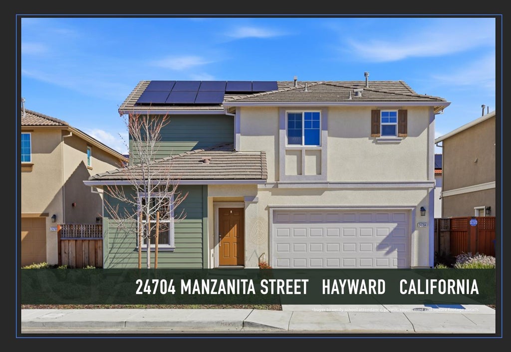 Welcome to this beautifully crafted 2024 D.R. Horton home in desirable Hayward. This residence blends modern design with everyday functionality. The open-concept floor plan is filled with natural light and highlighted by high ceilings and rich hardwood floors. The gourmet kitchen features quartz countertops, stainless steel appliances, and generous prep space perfect for both daily living and entertaining. Upstairs, spacious bedrooms provide comfort and privacy, including a well appointed primary suite designed for relaxation. Built in 2024 with quality craftsmanship and energy-efficient features, this nearly new home offers turnkey convenience and peace of mind. Step outside to a large backyard with space to entertain, garden, or create your own outdoor retreat. Ideally located near the San Mateo Bridge (Highway 92), this home provides easy commuter access while remaining close to shopping, dining, and parks delivering the perfect balance of comfort and convenience. The home is equipped with energy-efficient features including Solar Power and Double Pane Windows, contributing to sustainable living. The attached 2-car garage offers ample storage and parking. Don't miss this opportunity in Hayward!